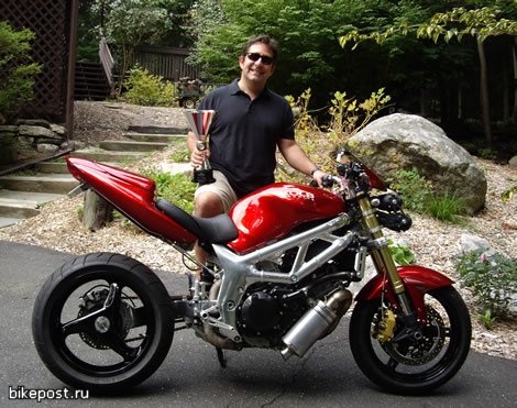 Этот SV650 принадлежит Лоуренсу Сомма (Lawrence Somma). Он сделал тюнинг ради своего собственного удовлетворения, и, сам к тому не стремясь, выиграл титул «Best of Show» на Cycle World International Motorcycle Show в 2007 году.