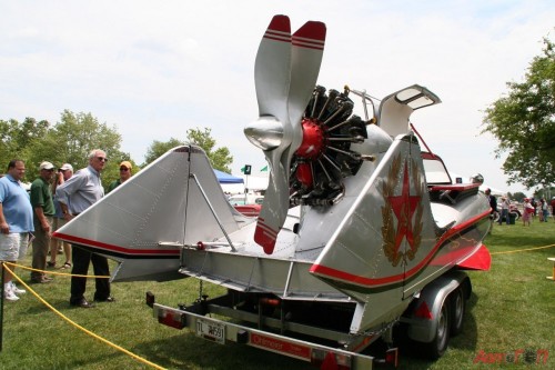 Этакий «корабль» работал на 365 сильном 9-цилиндровом радиальном самолетном двигателе и мог преодолевать болота, озера и снега на скорости около 130 км/час.